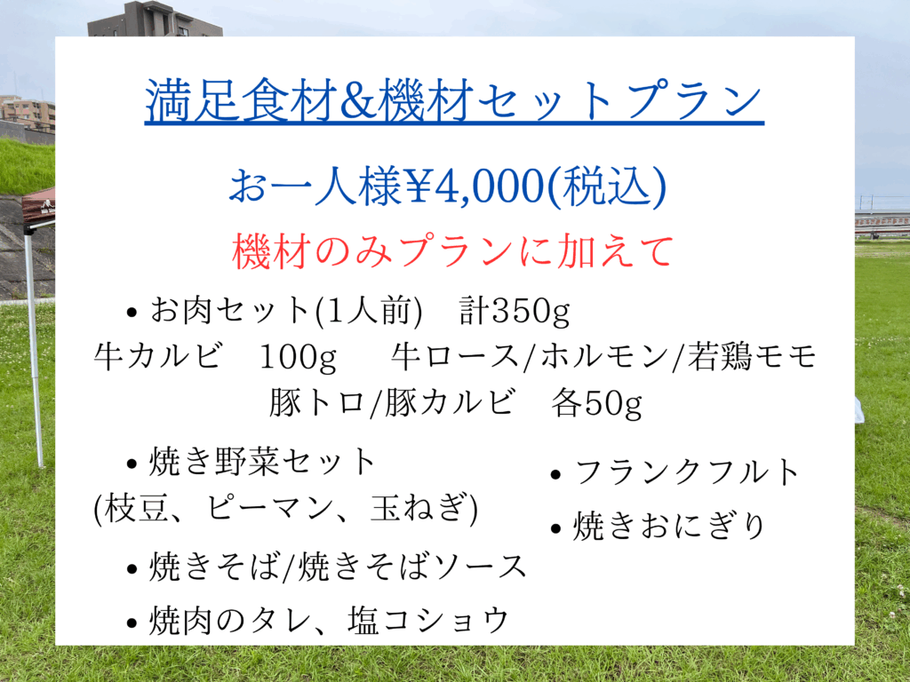上記の食材と、食材用のクーラーボックス、焼きそば用のアルミプレートが追加されます🙌
